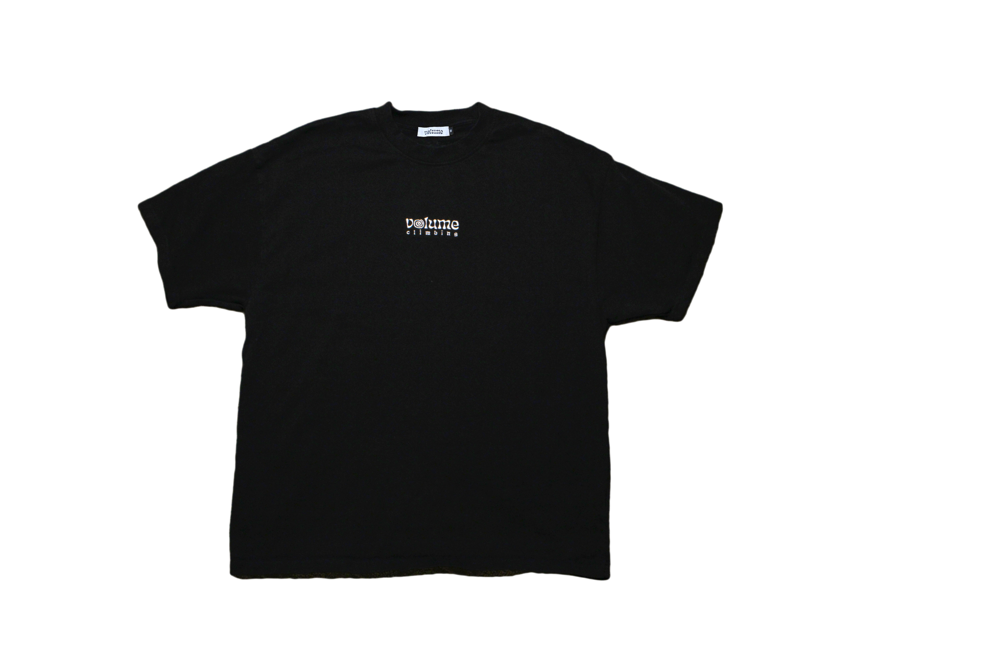 High quality 100% cotton 280gsm black t-shirt embroidered with the signature Volume Climbing logo in white