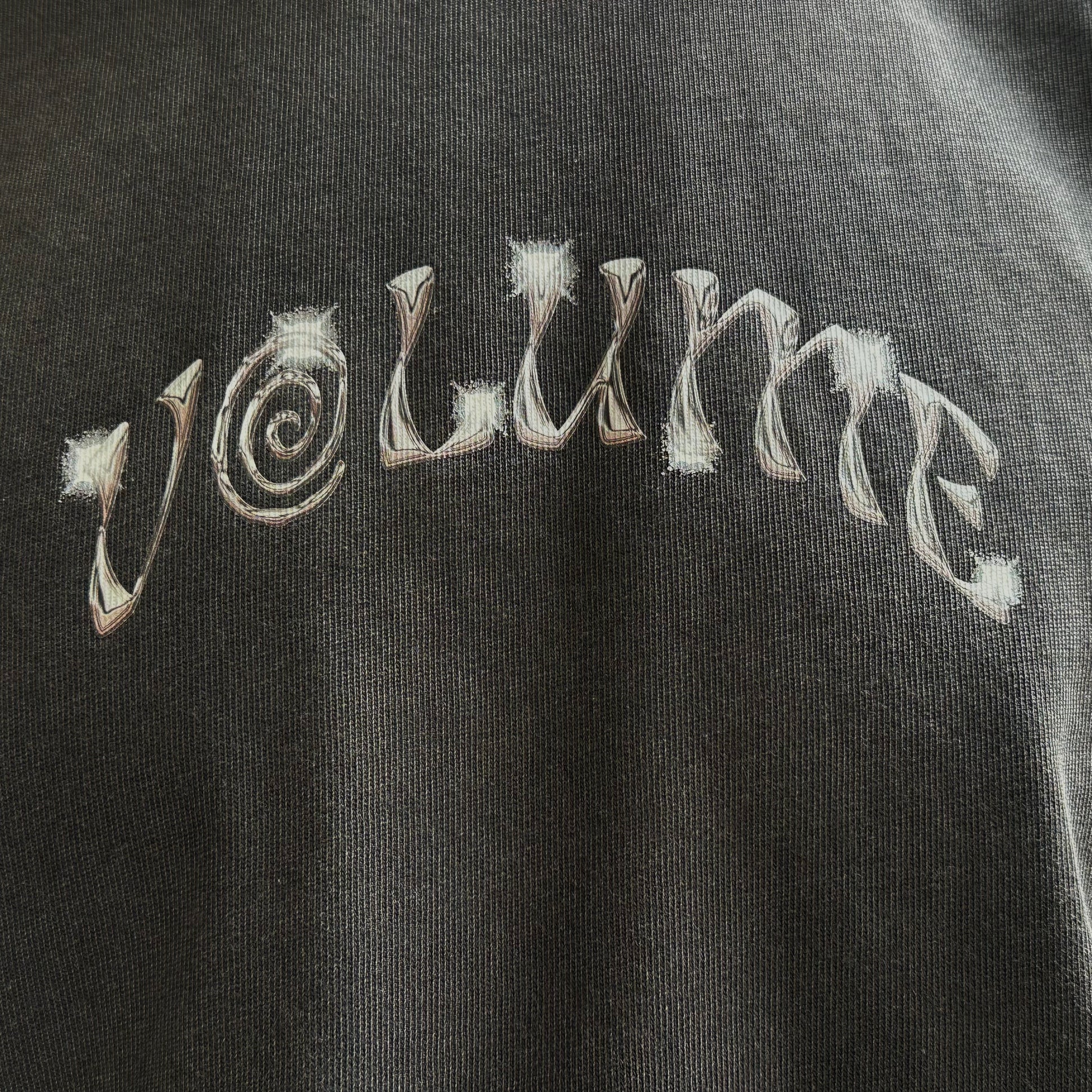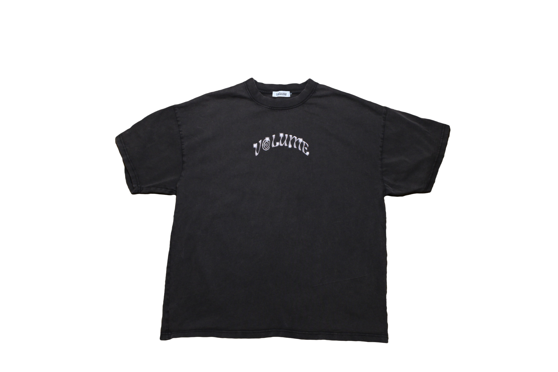 High quality 100% cotton 280gsm dark gray t-shirt digitally printed with the metal arc Volume Climbing logo on the front.